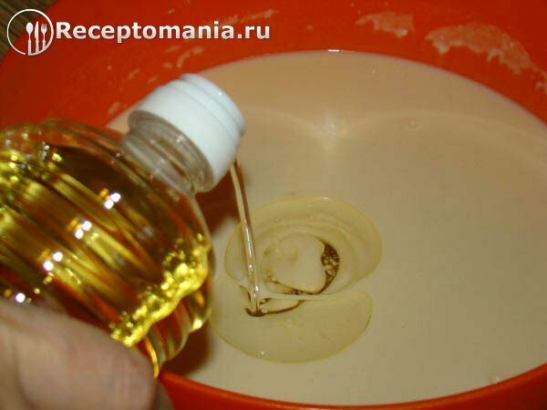 Далее наливаем растительное масло, так чтобы оно только вышло на поверхность.