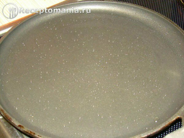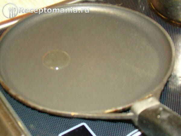 На самом сильном огне разогреваем блинницу, добавляем немного растительного масла и размазываем по всей сковороде.