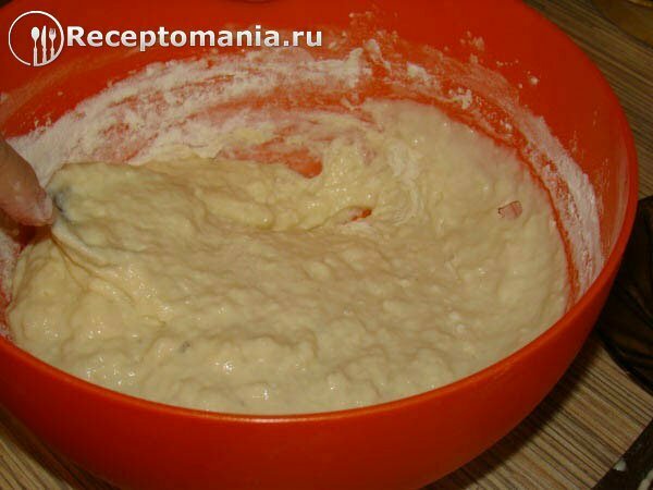 Размешиваем, разбивая комочки с мукой, так чтобы получилось однородное тесто.