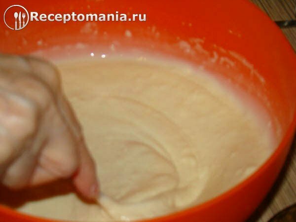 Хорошо размешиваем тесто и оставляем минут на 10, чтобы на поверхности образовались пузырьки.