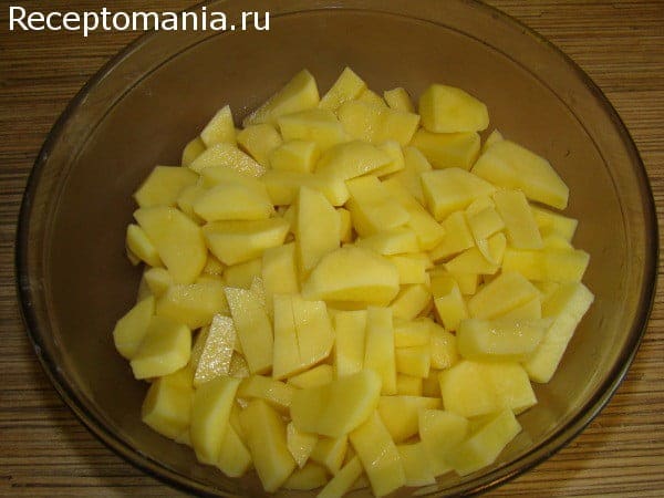 Нарезаем картофель, перекладываем в кастрюлю и варим 15 минут.