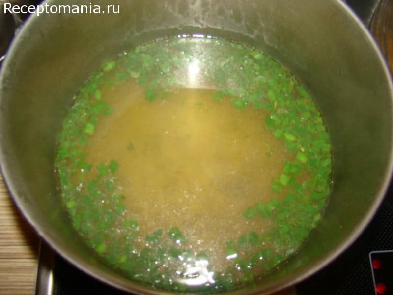 Измельчаем зелень, добавляем в бульон и варим еще 5 минут. Отвариваем яйца в подсоленной воде 10 минут. Очищаем, разрезаем на половинки и перед подачей бульона кладем в каждую тарелку.