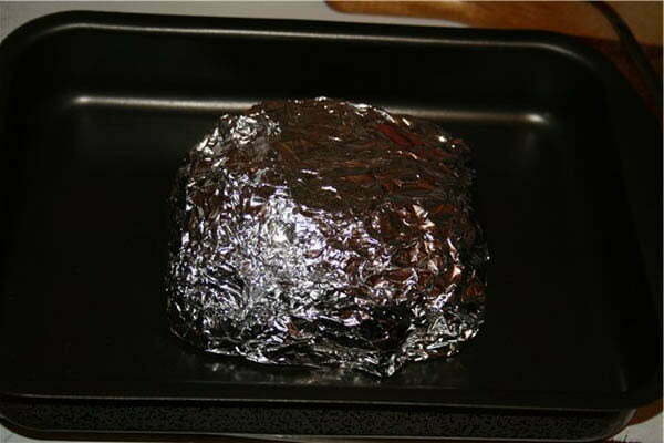 По пришествию времени фольгу натираем растительным маслом, выкладываем мясо индейки и поливаем стекшим соусом. Заворачиваем фольгу.