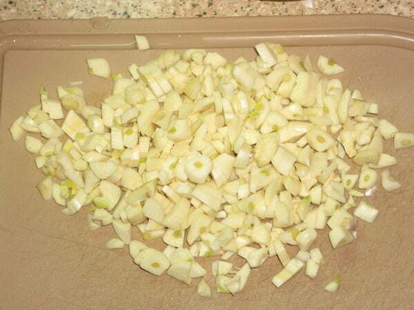 Чистим чеснок и нарезаем.