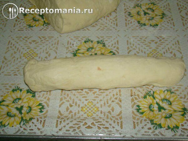 Отрезаем ¼ теста и делаем колбаску шириной примерно 5-6 см.