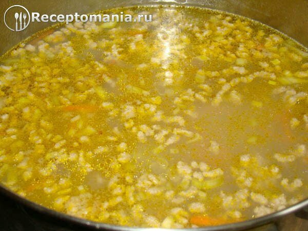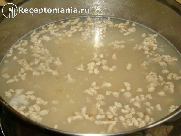 Варим 15-20 минут. После добавляем фарш.