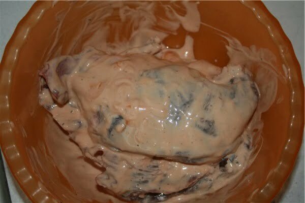 Приготовим маринад. Для этого смешаем горчицу, сметану, кетчуп, соль и перец. Нарезаем гуся на куски, тщательно обмазываем и оставляем на 2-3 часа при комнатной температуре.