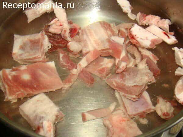 В кастрюлю с холодной водой опускаем свинину и варим 40-60 минут, если мясо варите одним куском, то время варки увеличивается.