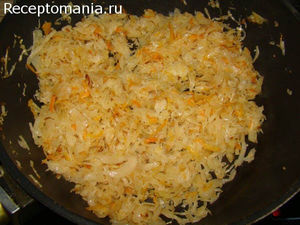 Выкладываем капусту на разогретую сковороду с растительным маслом и обжариваем 15 минут.