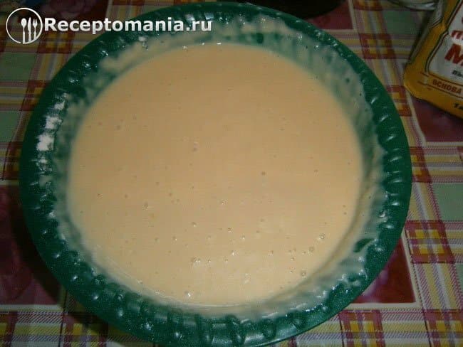 Добавить масло и муку. Тесто получается, как густая сметана.