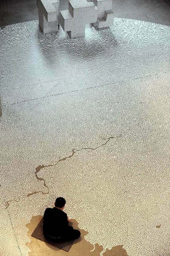 Японский художник Мотои Ямамото (Motoi Yamamoto) насыпает очень запутанные и трудоемкие конструкции из обыкновенной соли.