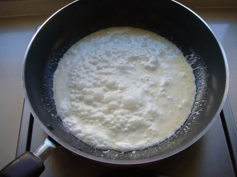 Пока варятся мидии, готовим соус. На сковородку выложить растительное масло и растопить, положить мелко порубленный чеснок, потушить полминутки и влить сливки, посолить. Все хорошо перемешать и кипятить еще полминуты.
