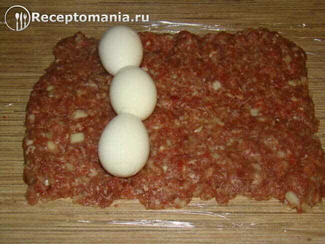 С левой стороны выкладываем вареные яйца.