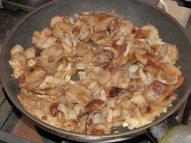 Отвариваем грибы 30 минут. Далее обжариваем на сале с луком такое же время.