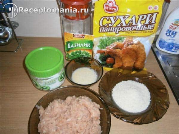 Куриные грудки (филе) – 3 шт. Яйца – 3 шт. Молоко - 100 мл. Базилик по вкусу Перец черный молотый по вкусу Сухари панировочные Растительное масло СольПриготовление: