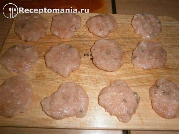 Яйцо взбить с молоком. Жарить на небольшом огне, чтобы не горело (примерно на 3). Каждую котлетку опустить в яйцо, потом в сухари и на сковородку. Жарить до золотистой корочки и на бумажное полотенце, чтобы стекло лишнее масло.