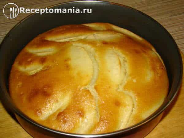 Даем немного остыть и аккуратно выкладываем на тарелку, чтобы пирог не осел.