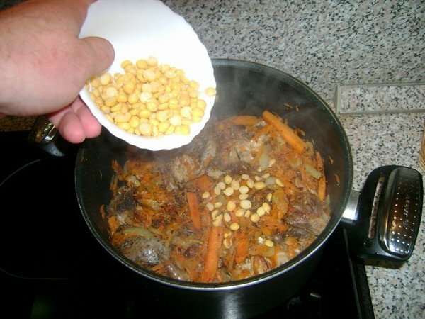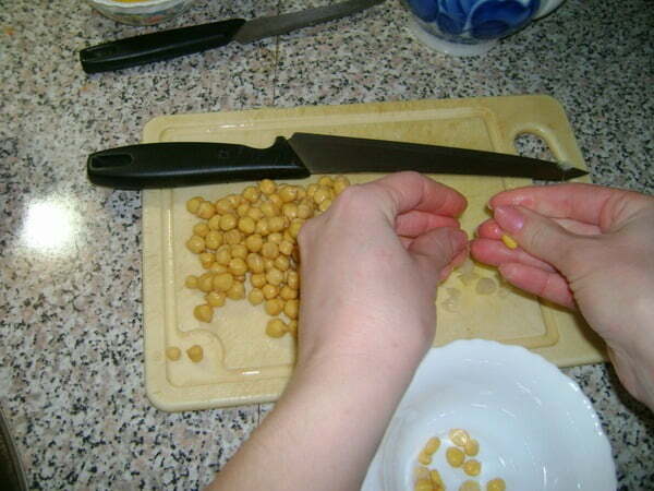 Очищаем от кожуры нут, заранее замоченный на 12 часов в теплой воде.