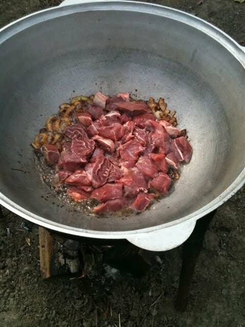 Говядина - 2 кг. Сало барана Рис – 2 кг. Морковь - 1.5 кг. Лук - 4 шт. Приправа для плова Чеснок – 3 шт. Соль Перец красный горькийПриготовление: