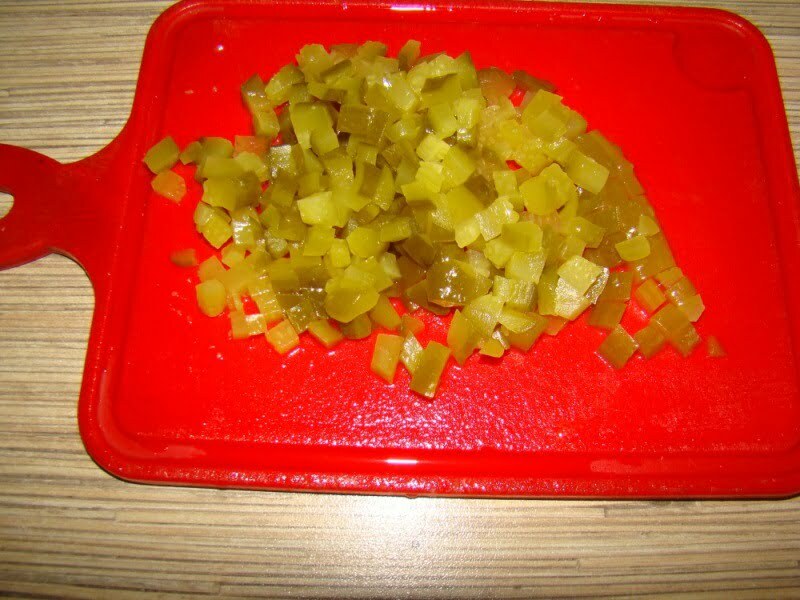 Нарезаем мелкими кубиками огурец. Чем больше в рассольник добавить огурцом, тем кислее он получиться. В зависимости от вкуса используем один или два огурца.