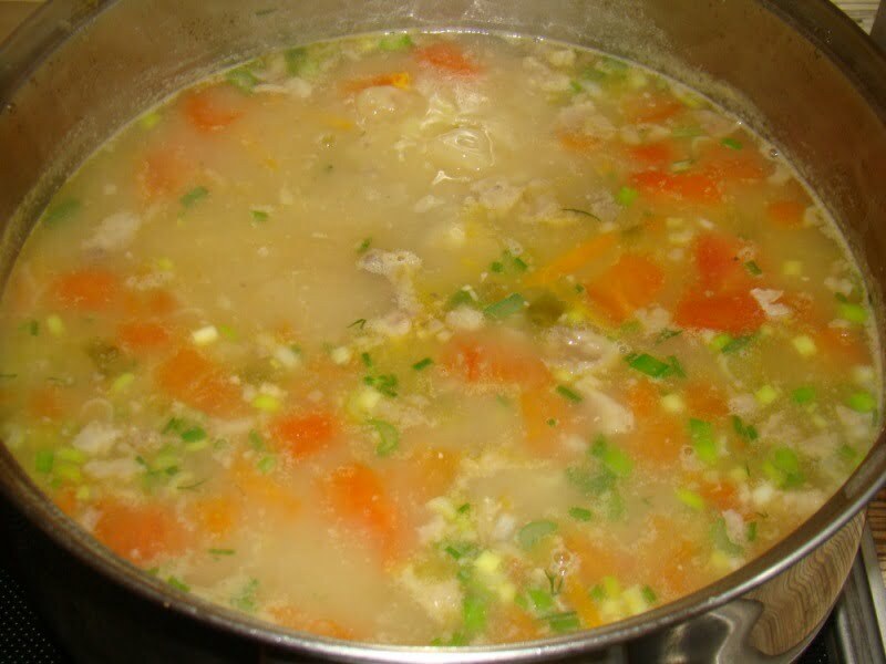 Далее добавляем перловую крупу и варим 30 мин. Крупа хорошо разваривается, больше указанного не кладите, иначе будет очень густой рассольник.