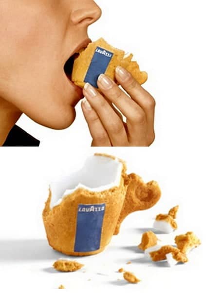 Выпил кофе, съел чашку, облизнулся и ушел по своим делам. С некоторых пор именно так могут поступать посетители тех итальянских ресторанов, где не просто предлагают качественный кофе Lavazza, но и подают его в аппетитных чашках Cookie Cup, которые для компании Lavazza разработал дизайнер Enrique Luis Sardi.