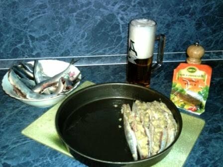 Сайра Яйцо – 1 шт. Батон Лук -1-2 шт. Приправа к рыбе (KAMIS) Растительное масло Пиво темное Заварка СольПриготовление: