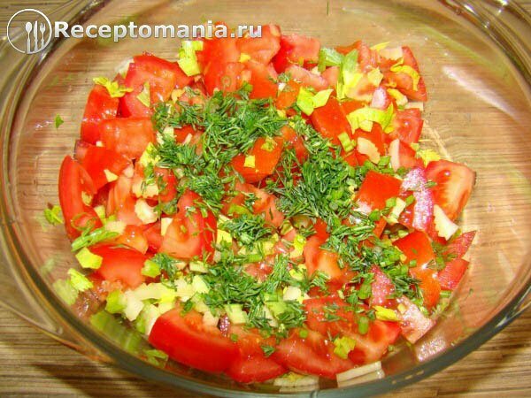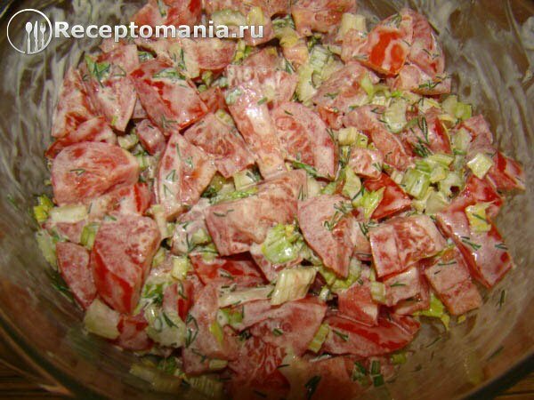 26/04/2012Салат из помидоров с сельдереем станет хорошим дополнение к мясу и рыбе. Сельдерей обладает своеобразным пряным ароматом. В сочетание с помидорами получается очень полезный салат.