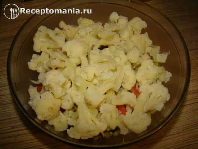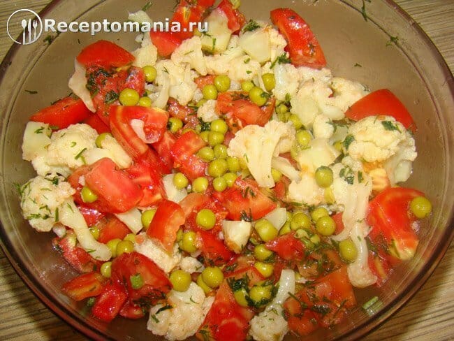 29/11/2014Салат из помидоров, цветной капусты и зеленого горошка