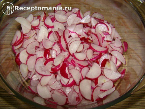 10/05/2012Предлагаю приготовить весенний легкий салат из редиса с зеленью. Настоящий правильно выращенный редис имеет островатый вкус. Выбирайте для салата только твердые корнеплоды, они более ароматные и сочные.