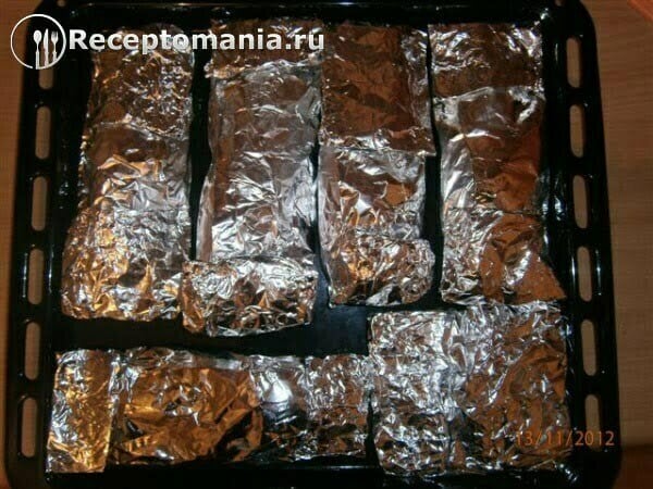 Подготовленную селедку заворачиваем в фольгу и отправляем в разогретую духовку до 180 градусов на 30 минут.