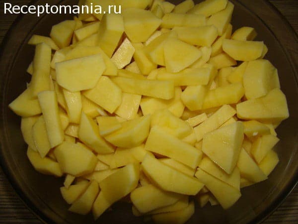 Пока обжаривается свинина, нарезаем картофель.