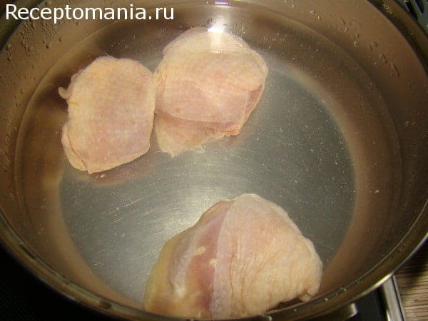 В кастрюлю с холодной водой опускаем курицу и варим 20 минут.