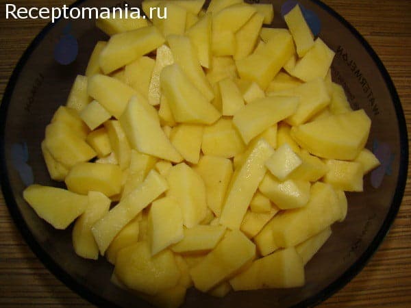 После нарезаем картофель, добавляем в суп и варим 10 минут.