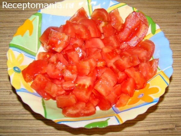 Нарезаем помидоры.