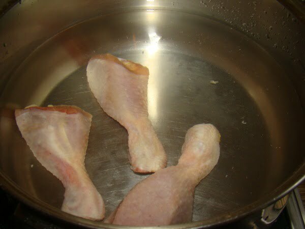 В холодную воду кладем курицу и отвариваем 20-30 минут.