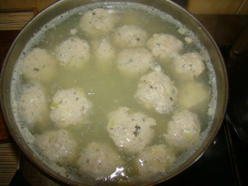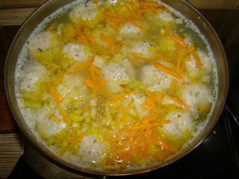 Если фрикадельки всплыли и закипели, добавляем зажарку.