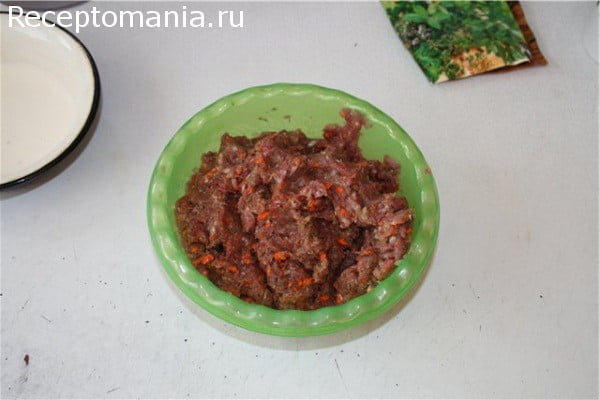 Перекручиваем в мясорубке вместе с мясом лук, морковь, чеснок и отжатый хлеб от молока. Фарш солим, перчим и оставляем настаиваться на 15 минут.
