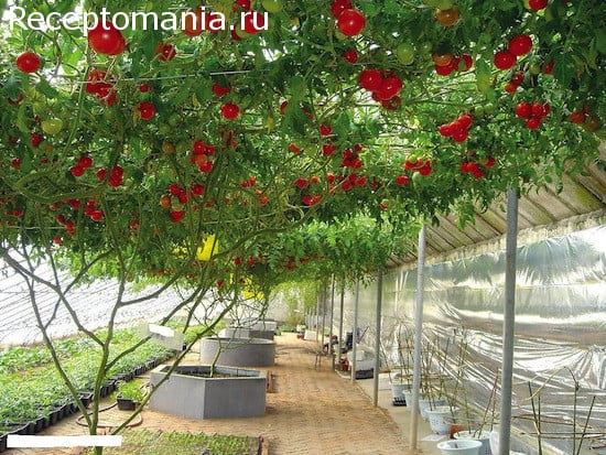 Этот шедевр растёт два-три года достигает высоты до трёх метров и ветви расстилает где-то на пять метров.В первый год до 500 кг даёт,а на следующий больше тонны.Помидоры напоминают сорт «белый налив» вкусные.Чтобы выращивать несколько лет нужна отапливаемая теплица. Но можно и год,рассадой. «Спрут» F1.