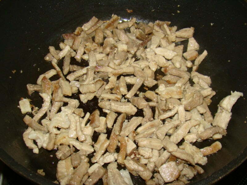 Обжарить свинину.
