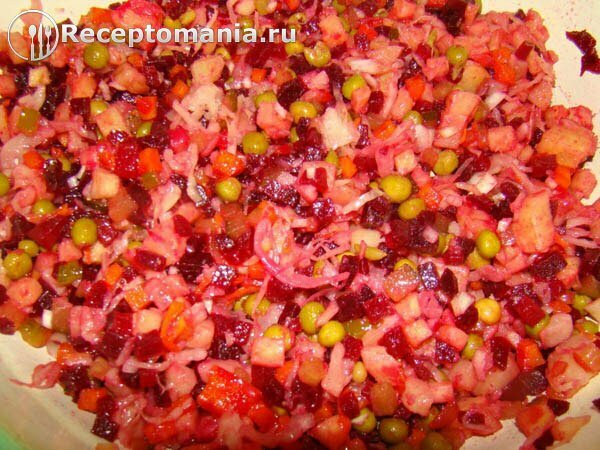 10/04/2012Винегрет — универсальный салат знакомый нам с детства, так как в нем много микроэлементов и витаминов и полностью состоит из овощей, считается очень полезным. Если Вы любите овощи этот салат придется Вам по вкусу.