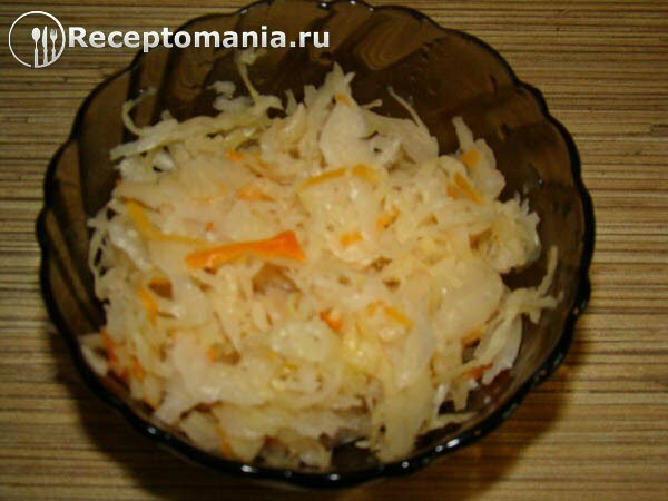 Заправляем растительным маслом, у меня уходит около полстакана, солим и все хорошо перемешиваем.