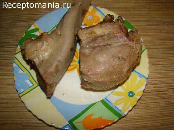 Выкладываем язык на тарелку, даем немного остыть.